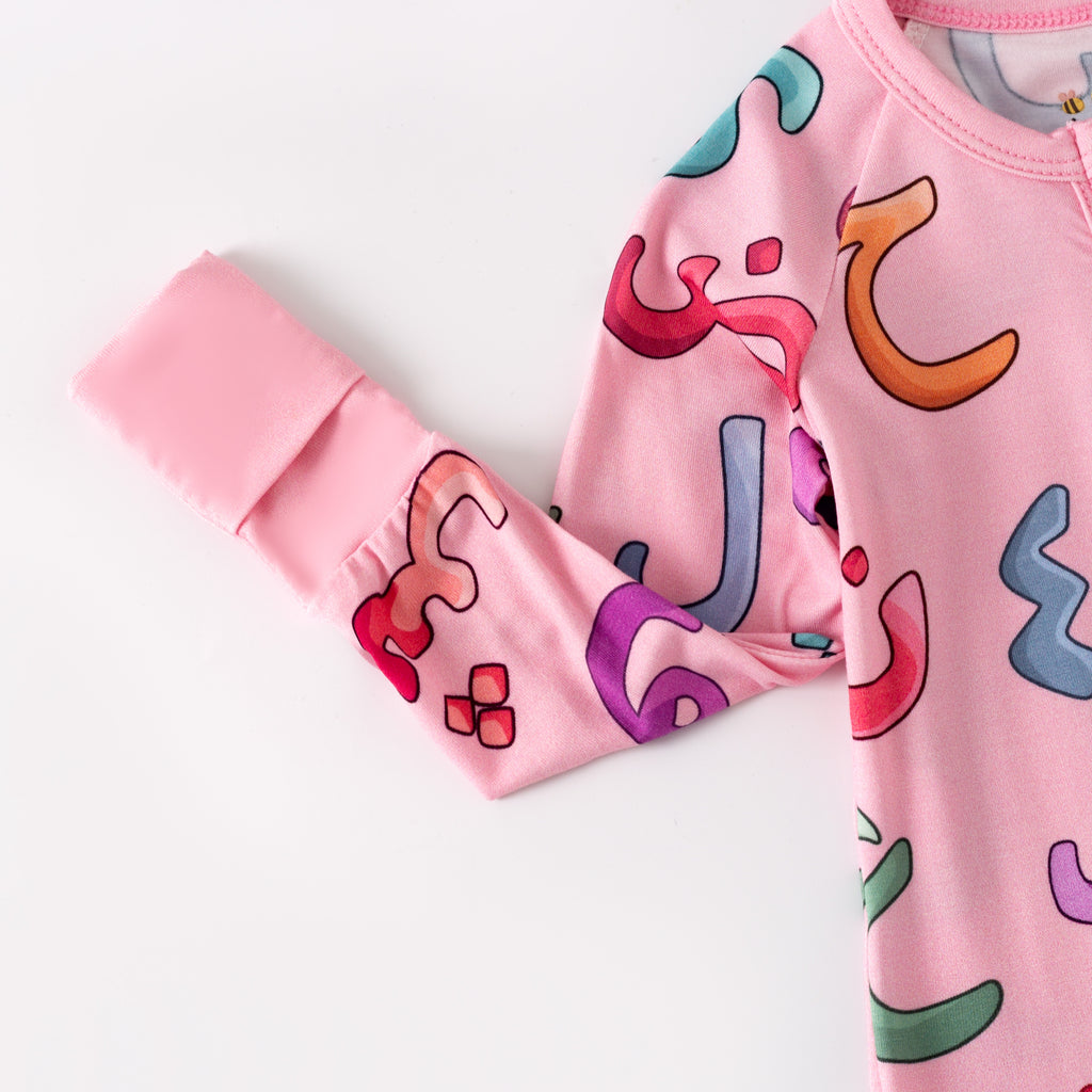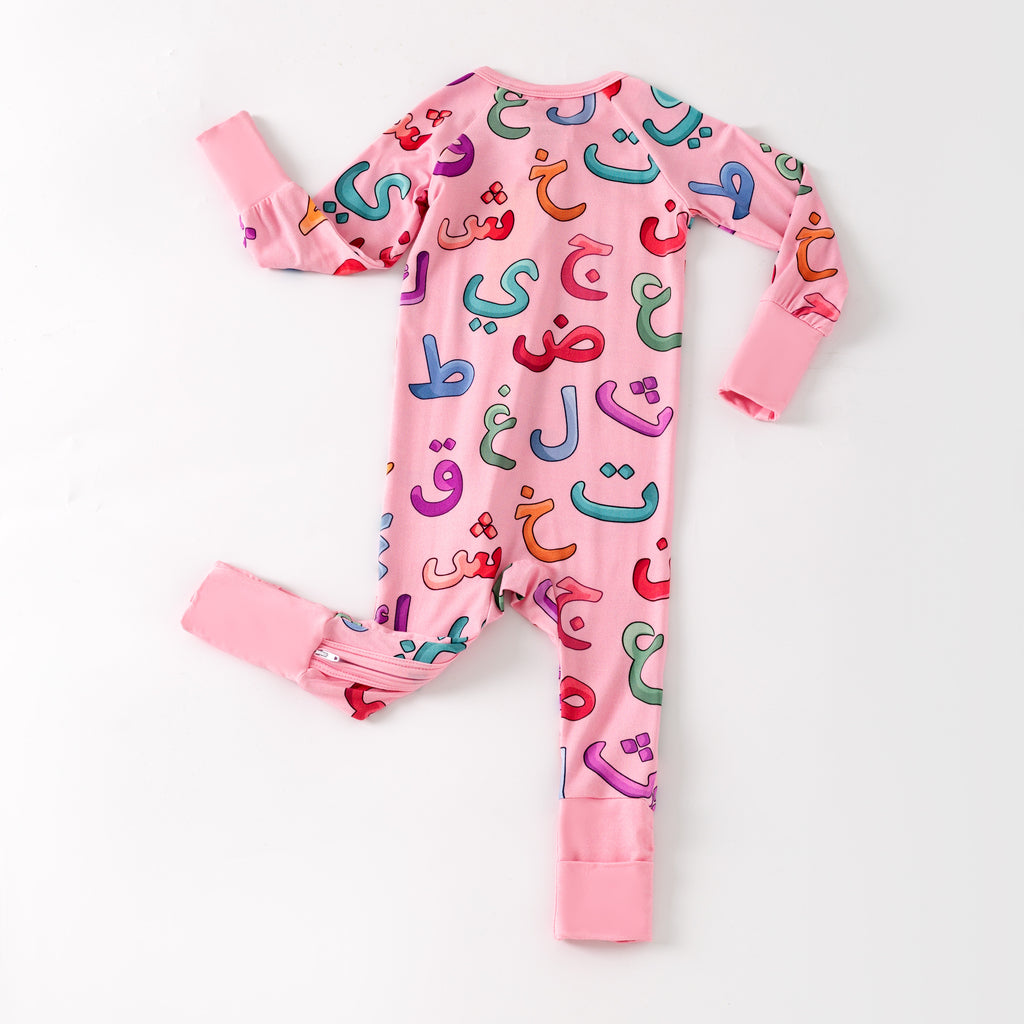 Featuring a beautiful Arabic alphabet print, the Zippy blends comfort with culture, making everyday wear meaningful and adorable. With a convenient two-way zipper, diaper changes are quick and hassle-free.