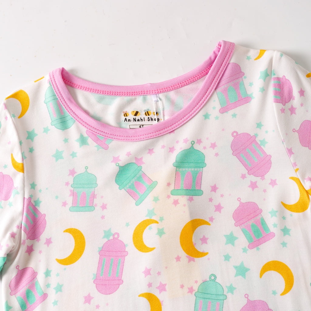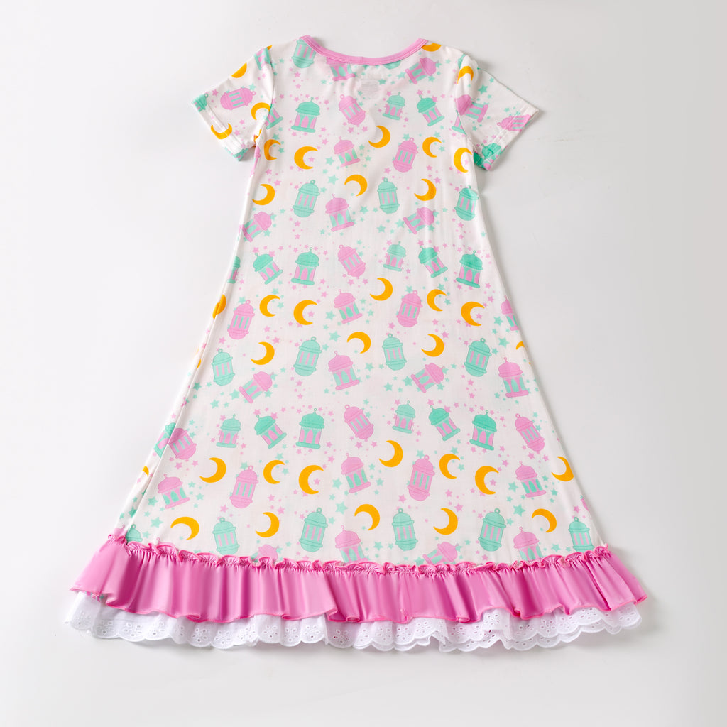 Ramadan Moon & Lantern Bamboo (Short sleeves) Nightgown - Pink