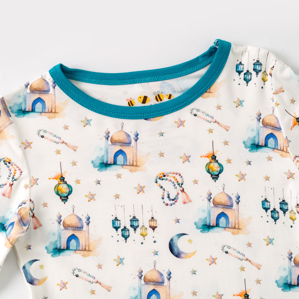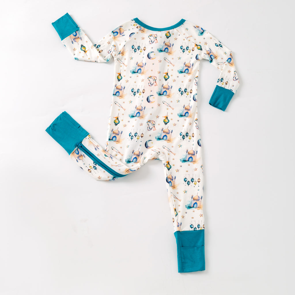 Teal Lantern Moon & Star Bamboo Pajamas & Zippy
